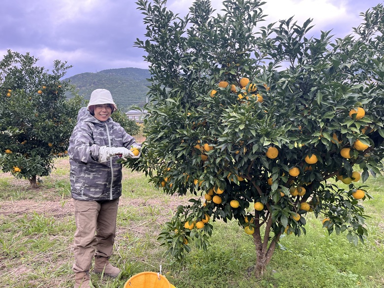 【あゆみさん】東京で書店員として働いていましたが、地元に帰って実家の農業をしたいとの思いから、地元である西予市にUターン就農しました。 【智明さん】東京で妻に出会い、Iターンで西予市に来ました。未経験からの就農で、地元の法人で2年間研修を積み、独立しました。