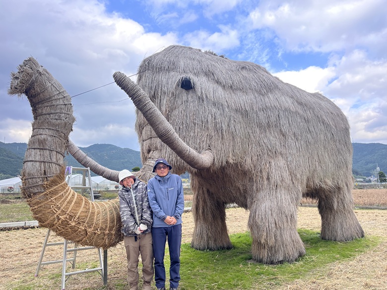 作物が順調に育ち、無事に収穫を迎えられたときに大きなやりがいを感じます。 また、私たちが生産した酒米の稲わらを使って、地域の有志が「わらマンモス」を作っています。地域のフォトスポットとして地域の賑わいづくりにもつながっています。