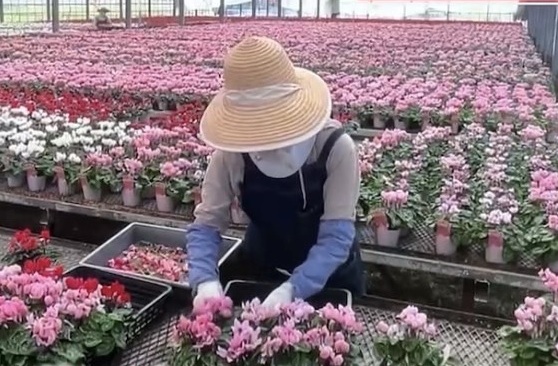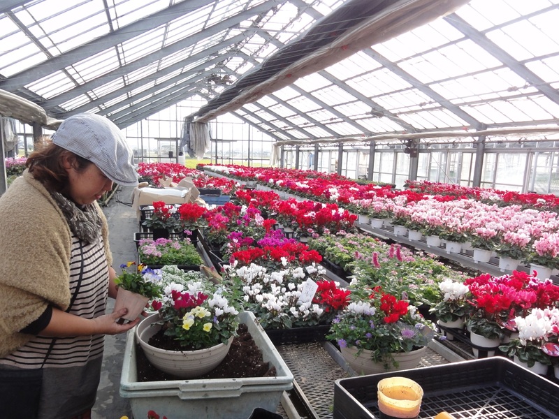 両親と共に約50aの施設でシクラメン(8万鉢)を中心とした花きの生産に取り組んでいます。 (パート6人、外国人実習生2人)