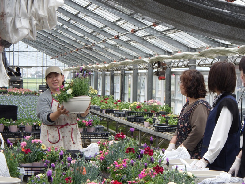 花き、特に鉢花の生産を行っています。花の栽培管理、配達、品種の選択や、営業活動、注文どりなど、業務は多岐にわたります。